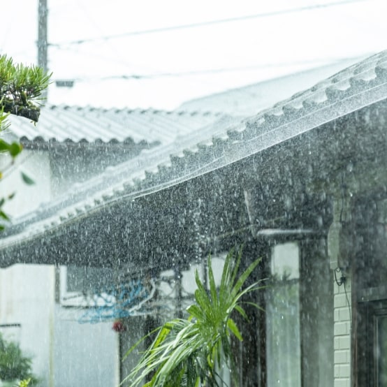 災害で屋根が飛んでしまった、大雨による水濡れ、浸水被害、雨樋が外れてしまったなど急な災害トラブルから、お客様をお守りします。